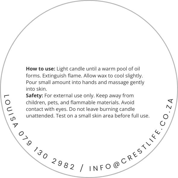 - Once the flame is extinguished and the wax has slightly cooled, a small amount may be gently applied to wrists or chest. Always patch test before skin application and avoid use on face or broken skin.